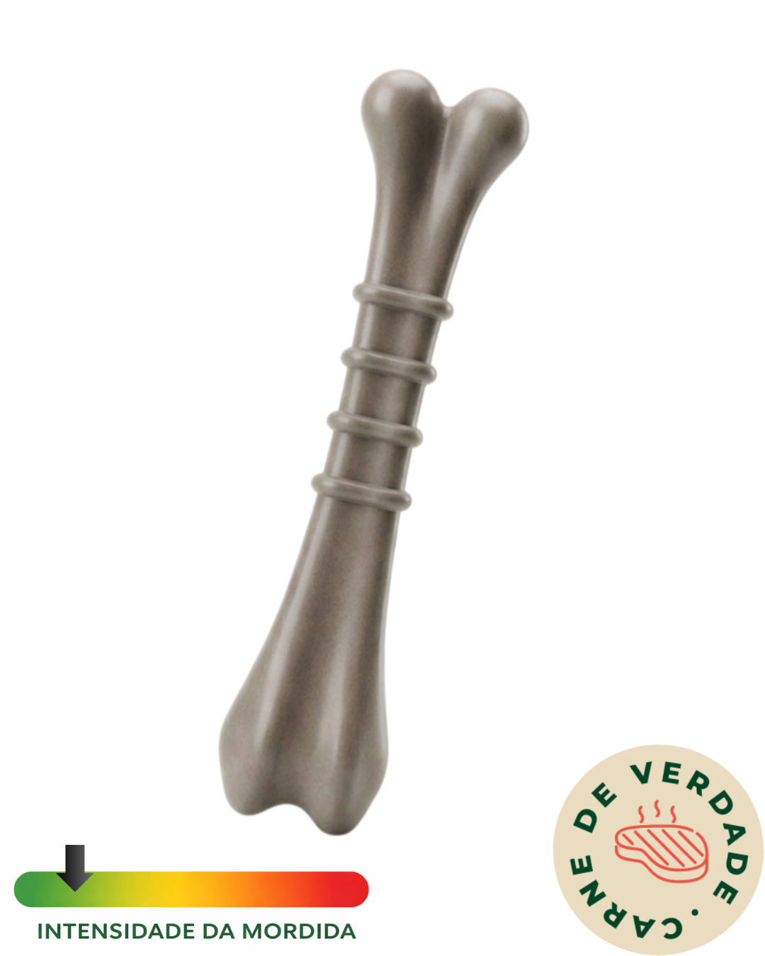 Com formato clássico de ossinho e tamanho ideal para mandíbulas pequenas, ele proporciona uma experiência de roer contínua e prazerosa. Seu grande diferencial está na composição: um biocomposto vegetal com carne de verdade incorporada, garantindo mais interesse sem o uso de aromas artificiais.